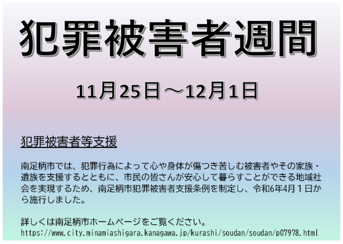 犯罪被害者等の方々の置かれている状況や、その支援等についての理解を深めていただく為の本の展示です。