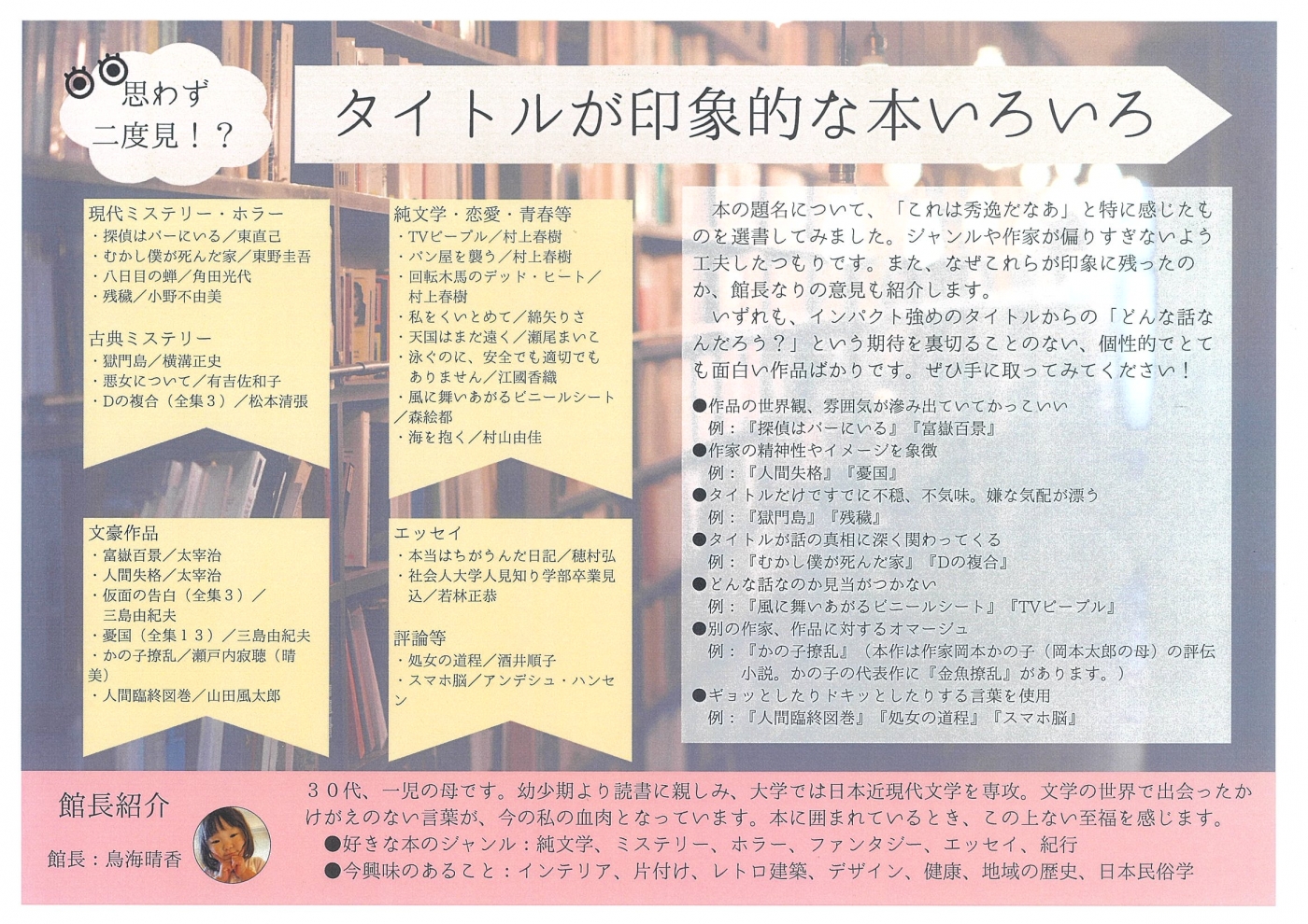■館長紹介(利用者はどんな館長かわかると親近感がわいたり、新たな視点で本を手にとれるので、